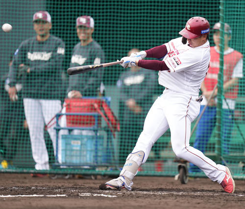 沖縄・金武キャンプ5日目を迎えた楽天は6日、初のシート打撃を実施。小郷裕哉外野手(28)がチーム"第1号"となる右越え弾を放った。2打席目に2年目右腕・坂井陽翔投手(19)の球をとらえた。