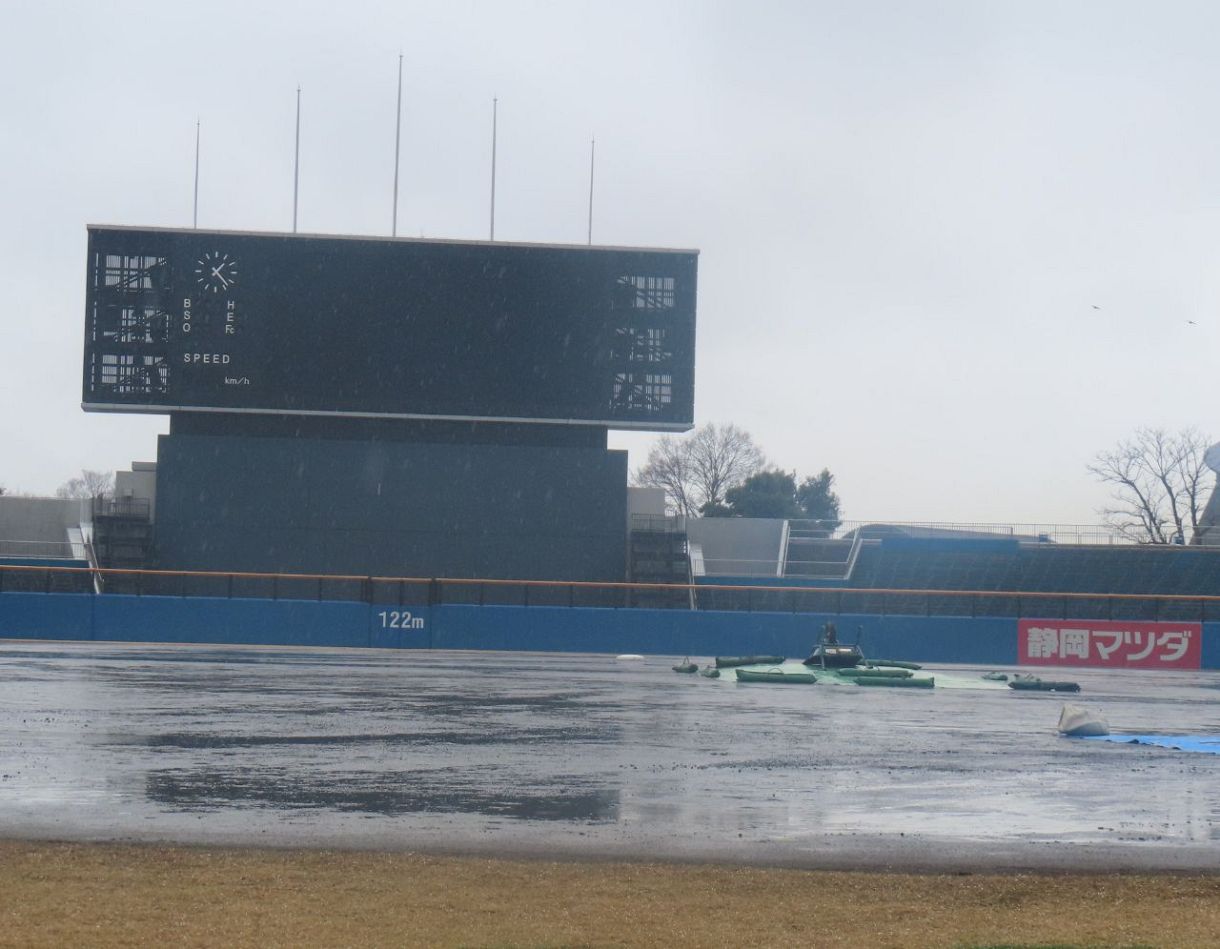 本日の静岡草薙球場でのオープン戦、東京ヤクルトスワローズ戦は、天候の回復が見込めないため、中止となりました。