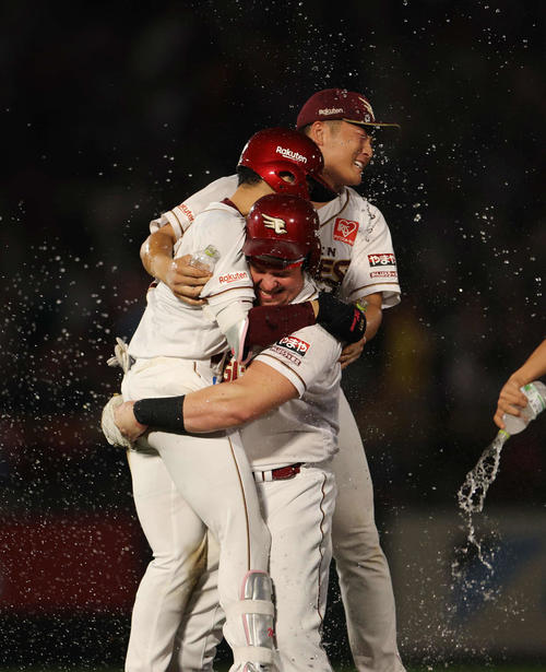 | 【楽天】高卒2年目の日当直喜、今季初の1軍登板でプロ初勝利「最後の最後に結果が出た」 - nikkansports.com (出典:nikkansports.com) 2点ビハインドの9回から6番手で登板。先頭渡部聖、児玉をいずれもフォークで連続三振、最後は山村を直球で二ゴロに仕留め、3者凡退で流れを呼び込んだ。その裏の攻撃で宗山塁内野手(22)のサヨナラ打など味方が3点を挙げ、白星をつかんだ。 宗山とともにお立ち台に上がった日当は「今年はファームでずっと投げていてうまくいかないことの方が多かったんですけど、大先輩の藤平さんとかに聞いて、いろいろ試行錯誤しながらやって、最後の最後に結果が出たので、すごくうれしい気持ちです」と力を込めた。 勝利の立役者となった若き右腕は「ここまで育ててくれたお父さん、お母さんに感謝の気持ちを伝えたいなと思います」と笑顔を見せた。 |